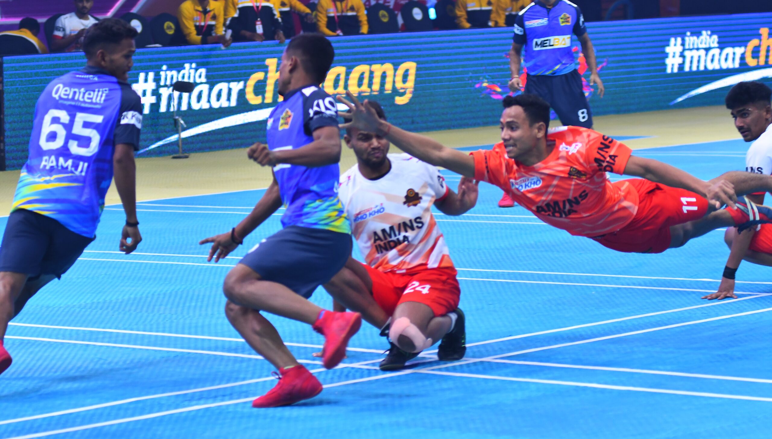 For Mumbai Khiladis, Rohan Kore (8) scored the most points in the match. The game began positively for Mumbai Khiladis as they earned a dream run bonus point in the first turn and allowed Gujarat Giants to secure only 14 points. However, Gujarat quickly turned the tide during turn 2 and claimed 3 dream run bonus points while defending.